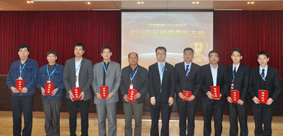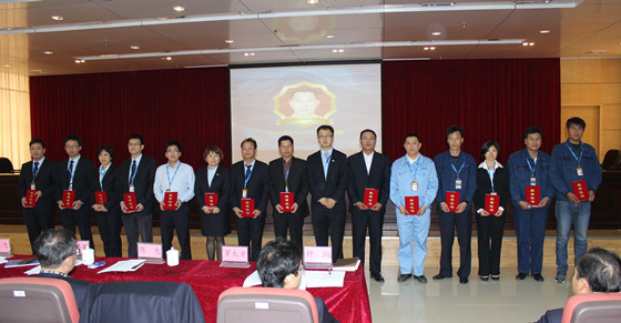 集團(tuán)副總工程師、工程部總經(jīng)理周軍為2015年度“金點(diǎn)子”獲得者頒獎并合影留念