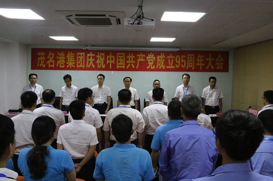 6月30日下午,茂名港集團(tuán)黨委在集團(tuán)五樓會議室召開慶祝中國共產(chǎn)黨成立95周年大會,歡慶黨的光輝節(jié)日,謳歌黨的豐功偉績,堅定集團(tuán)員工對黨的信念。大會對一批先進(jìn)基層黨組織、優(yōu)秀黨員、優(yōu)秀黨務(wù)工作者進(jìn)行了表彰,進(jìn)一步動員廣大黨員干部職工解放思想,與時俱進(jìn),團(tuán)結(jié)拼搏,扎實工作,為集團(tuán)健康發(fā)展、全面完成今年各項任務(wù)而努力奮斗。集團(tuán)黨委書記、董事長劉乃英出席會議并作講話。集團(tuán)總裁羅大方宣讀《關(guān)于表彰“兩學(xué)一做”先進(jìn)基層黨組織、優(yōu)秀黨務(wù)工作者、優(yōu)秀共產(chǎn)黨員的決定》和《關(guān)于表彰“黨在我心中”主題征文大賽、“手抄黨章60天”優(yōu)秀作品獲獎?wù)叩耐ㄖ。集團(tuán)黨委副書記肖炳璋主持會議。集團(tuán)副總裁戴飛、鐘珣、楊超燦,黨委委員黃遠(yuǎn)維,集團(tuán)機(jī)關(guān)全體人員,下屬企業(yè)班子成員、在崗全體黨員和入黨積極分子100余人參加了會議。