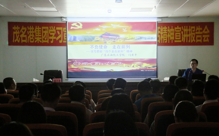為進一步學習宣傳貫徹習近平總書記參加廣東代表團審議時的重要講話精神,幫助全體干部職工更好地領(lǐng)悟習近平總書記重要講話深刻內(nèi)涵,4月26日上午,茂名港集團邀請市委宣講團成員、廣東石油化工學院教授閆亞平作習近平總書記重要講話精神專題宣講報告。集團黨委書記、董事長劉乃英主持會議。集團總裁羅大方、黨委副書記肖炳璋、副總裁楊超燦以及機關(guān)全體人員、各下屬公司經(jīng)營班子和黨員職工代表100多人聆聽了報告會。