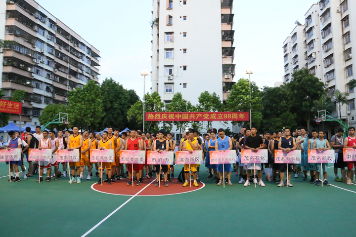 6月28日晚,由茂名港集團(tuán)主辦,建設(shè)銀行茂名市分行、茂名市茂名金源置業(yè)有限公司冠名協(xié)辦的2019“建行-金源置業(yè)杯”茂名港男子籃球邀請(qǐng)賽,在市文明南路銀苑籃球場(chǎng)拉開(kāi)了序幕,為紀(jì)念建黨98周年增添喜慶氣氛。市紀(jì)委副書記潘湖,市政府副秘書長(zhǎng)李恒和,市紀(jì)委常委徐慶,茂名港集團(tuán)黨委書記、董事長(zhǎng)劉乃英,建設(shè)銀行茂名市分行黨委書記、行長(zhǎng)李賢,以及各參賽單位的有關(guān)領(lǐng)導(dǎo),運(yùn)動(dòng)員、裁判員及各單位觀眾等200多人參加了開(kāi)幕式。茂名港集團(tuán)黨委副書記、工會(huì)主席肖炳璋主持開(kāi)幕式。