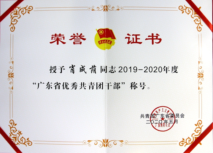“廣東省優(yōu)秀共青團(tuán)干部”榮譽(yù)稱號(hào)