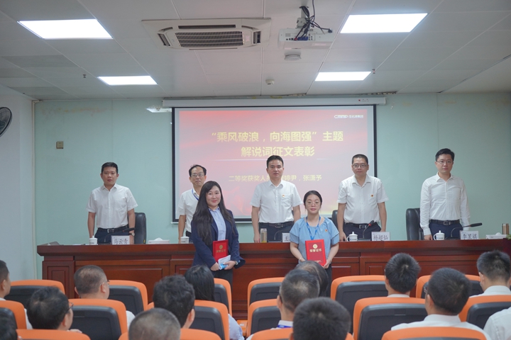 集團(tuán)機(jī)關(guān)各部(室)、各下屬企業(yè)負(fù)責(zé)人,集團(tuán)機(jī)關(guān)、下屬企業(yè)以及項(xiàng)目經(jīng)理部通訊員,“乘風(fēng)破浪,向海圖強(qiáng)”主題解說詞征文獲獎(jiǎng)人員約60人參加會(huì)議。(通訊員:鄧添允)