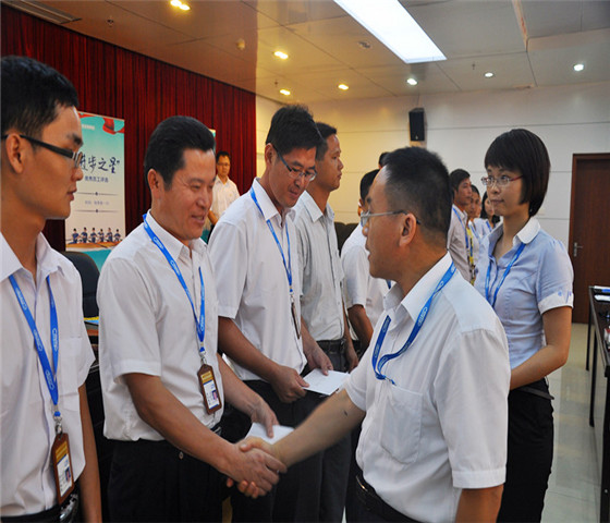 在會(huì)上,茂名港集團(tuán)全體干部職工觀看了公司兩部宣傳片,形象地了解了公司的定位和發(fā)展方向。接著會(huì)上對(duì)評(píng)選出來的第一季度“建言獻(xiàn)策”9名優(yōu)秀提案獲得者和14名“進(jìn)步之星”獲得者進(jìn)行了表彰和頒獎(jiǎng),勉勵(lì)他們?cè)俳釉賲,為公司發(fā)展貢獻(xiàn)更多智慧與力量,也為廣大職工樹立起榜樣!敖ㄑ垣I(xiàn)策”獲獎(jiǎng)?wù)叽韽埲髋c“進(jìn)步之星”獲獎(jiǎng)?wù)叽硇旖ê影l(fā)表了熱情洋溢、感人肺腑的獲獎(jiǎng)感言,他們都為在茂名港集團(tuán)這個(gè)氛圍和諧融洽、充滿激情與斗志的集體工作而感到驕傲,表示要繼續(xù)盡心盡力做好自己的本職工作,為茂名港集團(tuán)發(fā)展壯大而努力。胡軍董事長在會(huì)上對(duì)獲獎(jiǎng)?wù)弑硎玖俗YR,他在會(huì)上和大家分享了茂名港集團(tuán)企業(yè)文化的構(gòu)建過程、核心文化、企業(yè)精神、品牌口號(hào)等內(nèi)容,并希望每一位職工都深入領(lǐng)會(huì)茂名港企業(yè)文化,同時(shí)他指出茂名港集團(tuán)能在短短不到兩年的時(shí)間內(nèi)取得令人矚目的成績(jī),歸根結(jié)底是在集團(tuán)優(yōu)秀的企業(yè)文化引領(lǐng)下,全集團(tuán)員工團(tuán)結(jié)拼搏、開拓進(jìn)取的結(jié)果。他希望通過這次企業(yè)文化活動(dòng)的開展,進(jìn)一步凝聚每一位職工的智慧,全體茂名港人團(tuán)結(jié)一致,擰成一股繩,推動(dòng)公司不斷向前進(jìn),為提升茂名港共同品牌價(jià)值而努力奮斗。