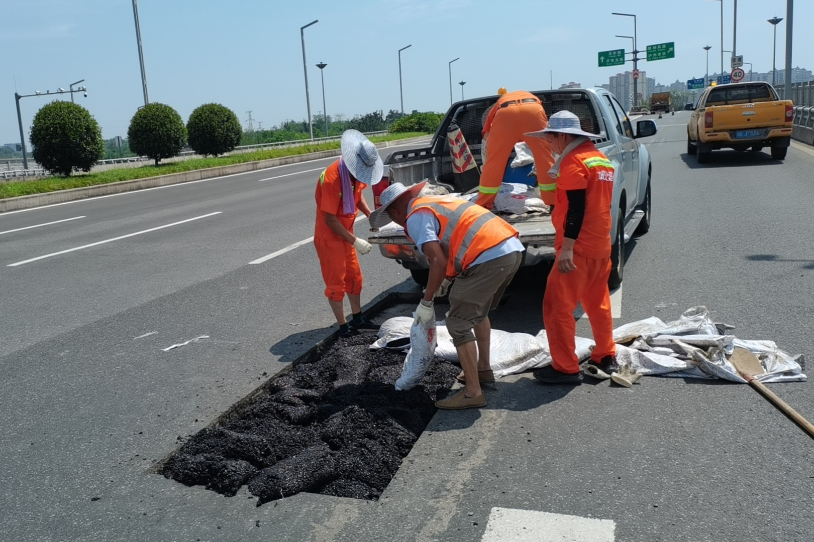 為防止夏季瀝青混凝土路面受高溫影響產(chǎn)生裂縫、塌陷等現(xiàn)象,市政建設(shè)公司環(huán)衛(wèi)車輛對(duì)沱二橋、葛洲壩、長(zhǎng)二橋、千鳳路、二環(huán)路等5個(gè)段車行道進(jìn)行循環(huán)灑水降溫作業(yè),維護(hù)路面約87萬(wàn)平方米,認(rèn)真做好路面養(yǎng)護(hù)工作,維護(hù)車輛行車安全和道路整潔。