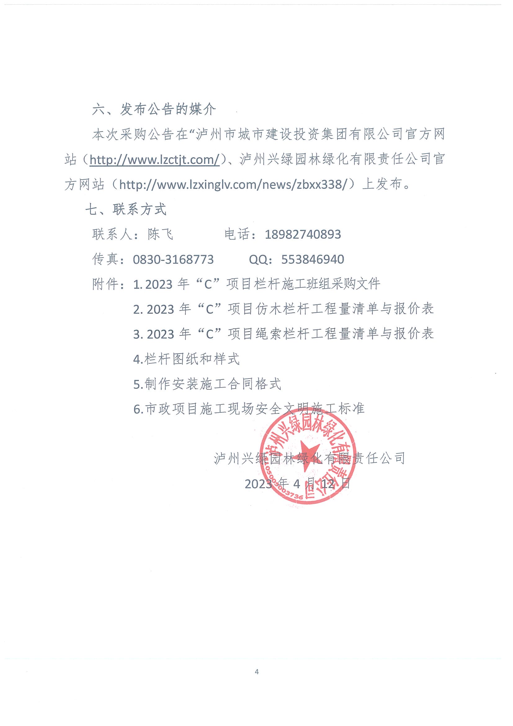 2023年“C”項(xiàng)目采購(gòu)欄桿施工班組(第二次)